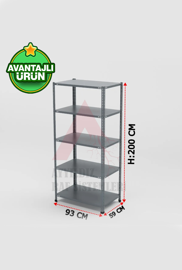 5 Raflı 59×93 Çelik Raf Sistemi& Depo Raf Sistemi & Civatalı İstif Rafı