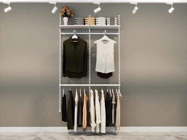 Beyaz İkili Dekoratif Giyinme Odası Raf Sistemi & Askılı Ev Tipi Raf Sistemleri